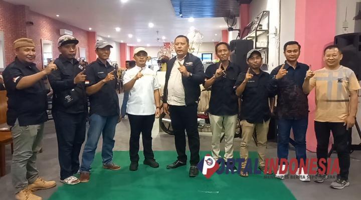 Ormas Alaspati Kota Pasuruan, saat foto bersama calon walikota Pasuruan, Adi Wibowo (memakai baju putih dan bertopi putih) di kafe love story, Kota Pasuruan