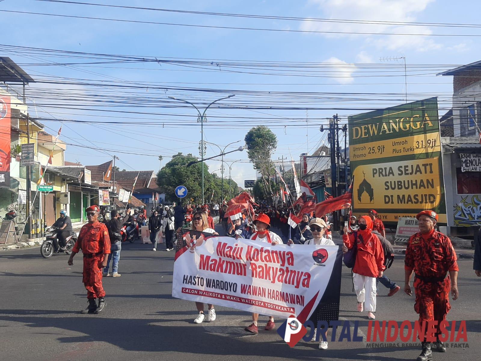 Iringan drumband dan tari-tarian serta barisan prajurit turut menyemarakkan rombongan Hasto-Wawan yang berjalan melintasi Jalan Kyai Mojo Yogyakarta. Di sepanjang jalan yang dilalui pasangan Hasto-Wawan mencoba mengenalkan diri dengan menyapa dan mengajak bersalaman warga yang menyaksikan iring-iringan di pinggir jalan tersebut.