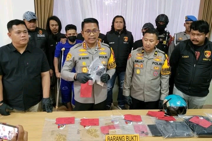 “Pada saat penggeledahan, kami amankan 15 kalung emas dengan berat 171,4 gram dan satu unit air gun serta satu boks gotri,” ungkap Ari.