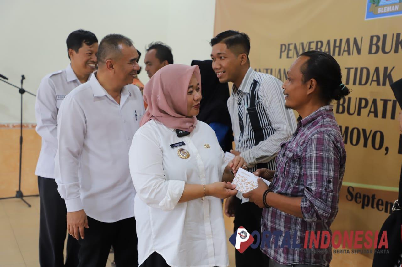 Bupati Sleman Kustini Sri Purnomo serahkan buku tabungan kepada warga Godean yang rumahnya akan direhab melalui program RTLH (Brd/Portal Indonesia)