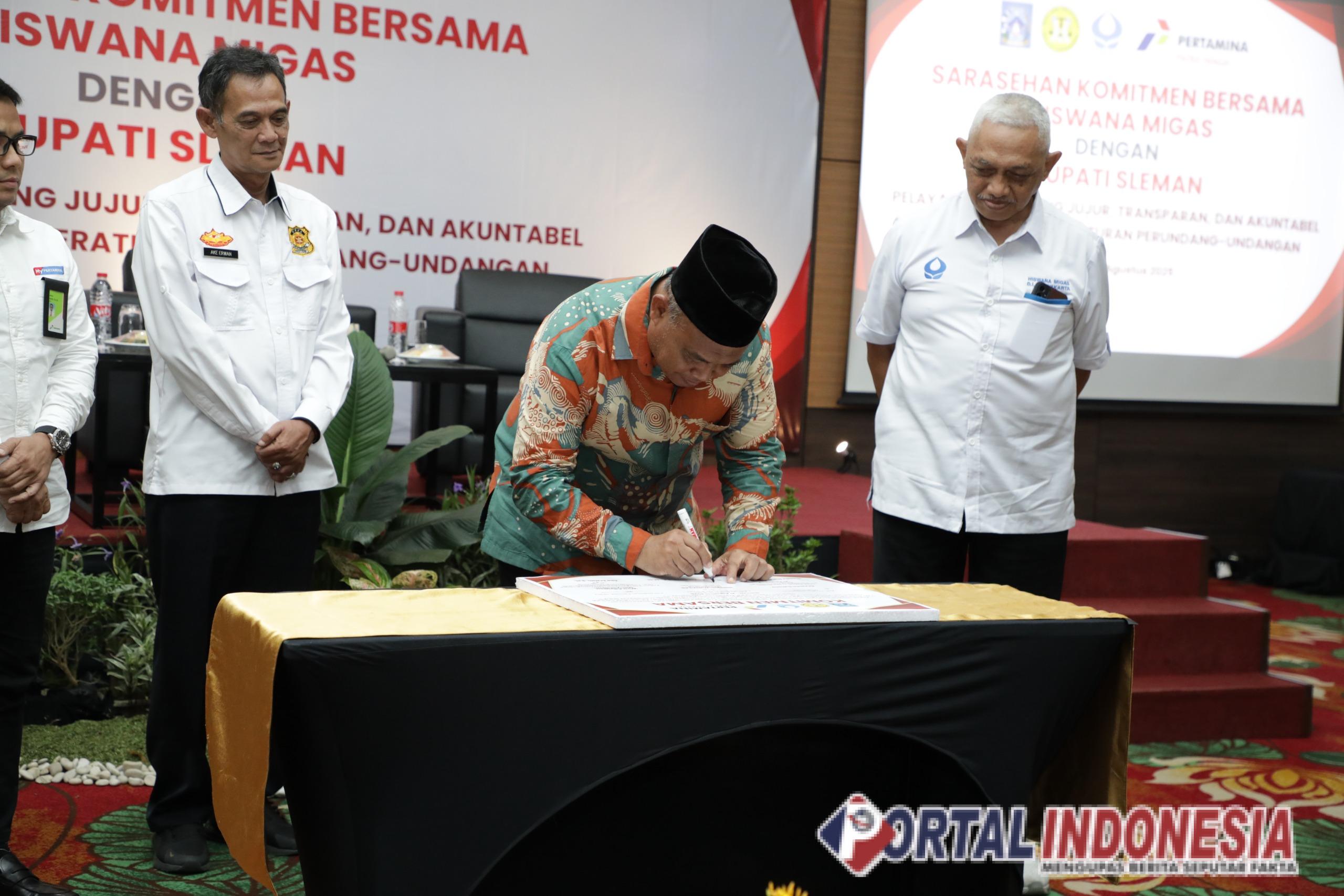 Komitmen tersebut ditandatangani oleh Bupati Sleman, Harda Kiswaya, Ketua Hiswana Migas DIY SPBU Aryanto Sukoco, Ketua Bidang SPBU Hiswana Migas DIY, Bangun Wahyu Aji Wira, Perwakilan Pemilik SPBU, Wira Adyaksa, SAM Retail Yogyakarta PT. Pertamina Patra Niaga, Weddy Surya Windrawan, dan Katim Pengawasan Metrologi Legal dan Pemberdayaan Masyarakat Direktorat Metrologi, Ake Erwan di Hotel Crystal Lotus, Mlati, Sleman, Kamis (21/8/2025).