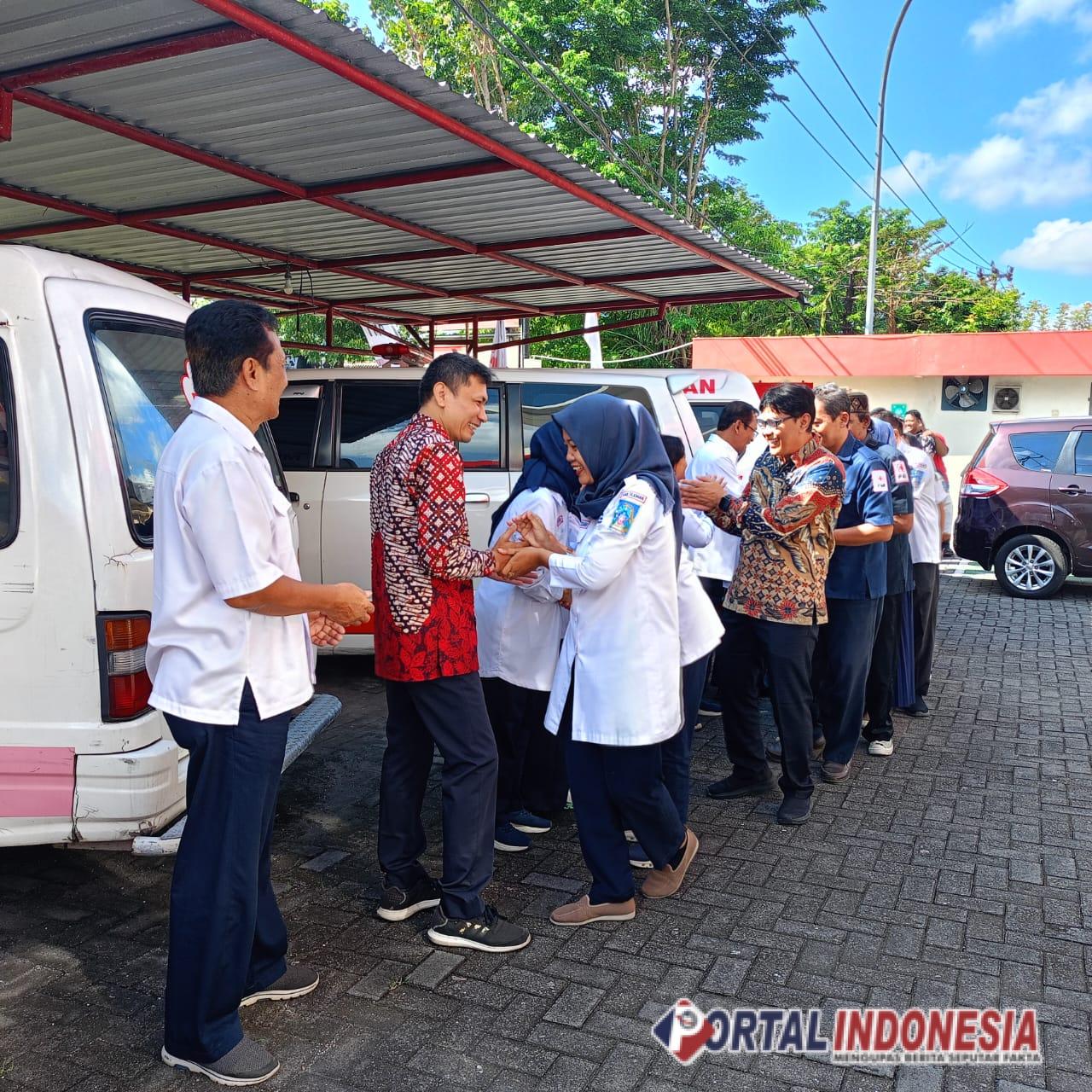 Pengurus dan karyawan PMI Sleman saling berjabat tangan