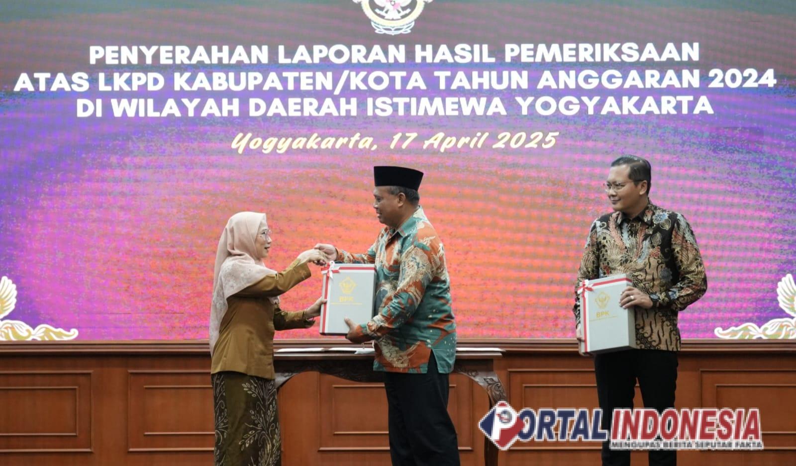 Predikat tersebut diserahkan diserahkan oleh Kepala BPK DIY Agustin Sugihartatik kepada Bupati Sleman Harda Kiswayabersama ketua DPRD Sleman Gustan ganda pada acara penyerahan Laporan Hasil Pemeriksaan (LHP) atas laporan Keuangan Pemerintah daerah (LKPD Kabupaten/Kota Tahun anggaran 2024 Wilayah DIY di Kantor BPK Perwakilan DIY. Kamis, (17/4/2025).