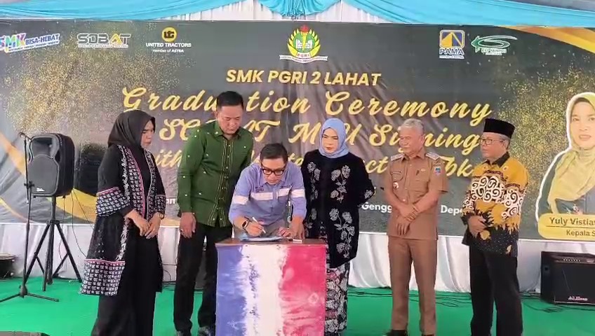 Meta Deskripsi: Pelepasan siswa SMK PGRI 2 Lahat 2024/2025 dimeriahkan dengan penandatanganan MoU bersama United Tractors untuk kerja sama pendidikan dan industri melalui program SOBAT.
