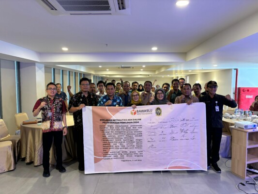 Tiga pernyataan komitmen netralitas ASN sebagai berikut: 1. Menjaga dan menegakkan prinsip netralitas ASN dalam melaksanakan pelayanan publik baik sebelum, selama maupun sesudah pelaksanaan Pemilihan Tahun 2024; 2. Menghindari konflik kepentingan dengan tidak melakukan praktek intimidasi kepada pegawai ASN dan seluruh elemen masyarakat serta tidak memihak kepada partai politik atau pasangan calon tertentu; dan 3. Tidak melakukan politik praktis serta menolak politik uang, kampanye hitam dan politisasi SARA baik secara langsung maupun di media sosial. Serangkaian kegiatan telah dilakukan Bawaslu Kota Yogyakarta dalam rangka menjalankan fungsi pencegahan dan pengawasan. Kegiatan ini menjadi bukti komitmen ASN di lingkungan Pemerintah Kota Yogyakarta dalam menciptakan lingkungan pemerintahan yang netral dan berintegritas.