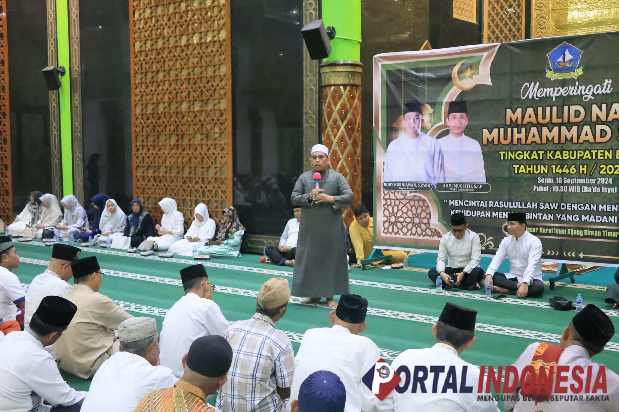 Pada saat peringatan Maulid Nabi Muhammad SAW diisi dengan ceramah agama oleh Ustad Edi Sanjaya Lc, dengan tema “Mencintai Rasulullah SAW Dengan Meneladaninya Dalam Kehidupan Menuju Bintan Yang Madani Dan Sejahtera”.