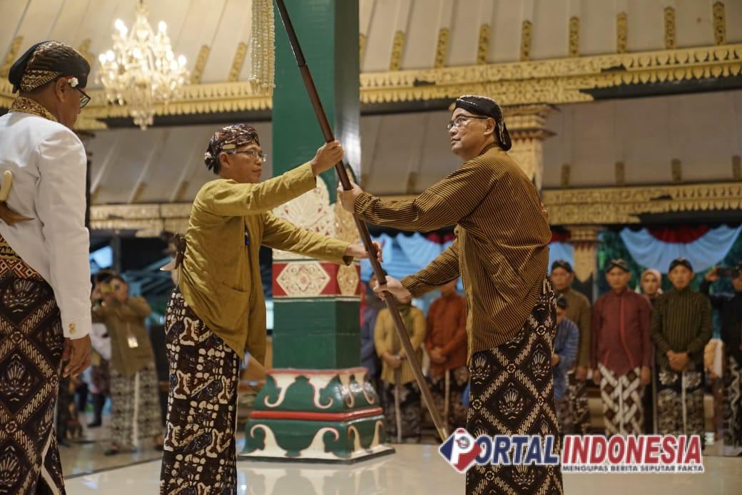 Sekda Sleman Susmiarto serahkan tombak Kyai Turunsih kepada ketua panitia Hari jadi ke 109 Sleman Eka Prihantoro (Portal Indonesia/Brd)