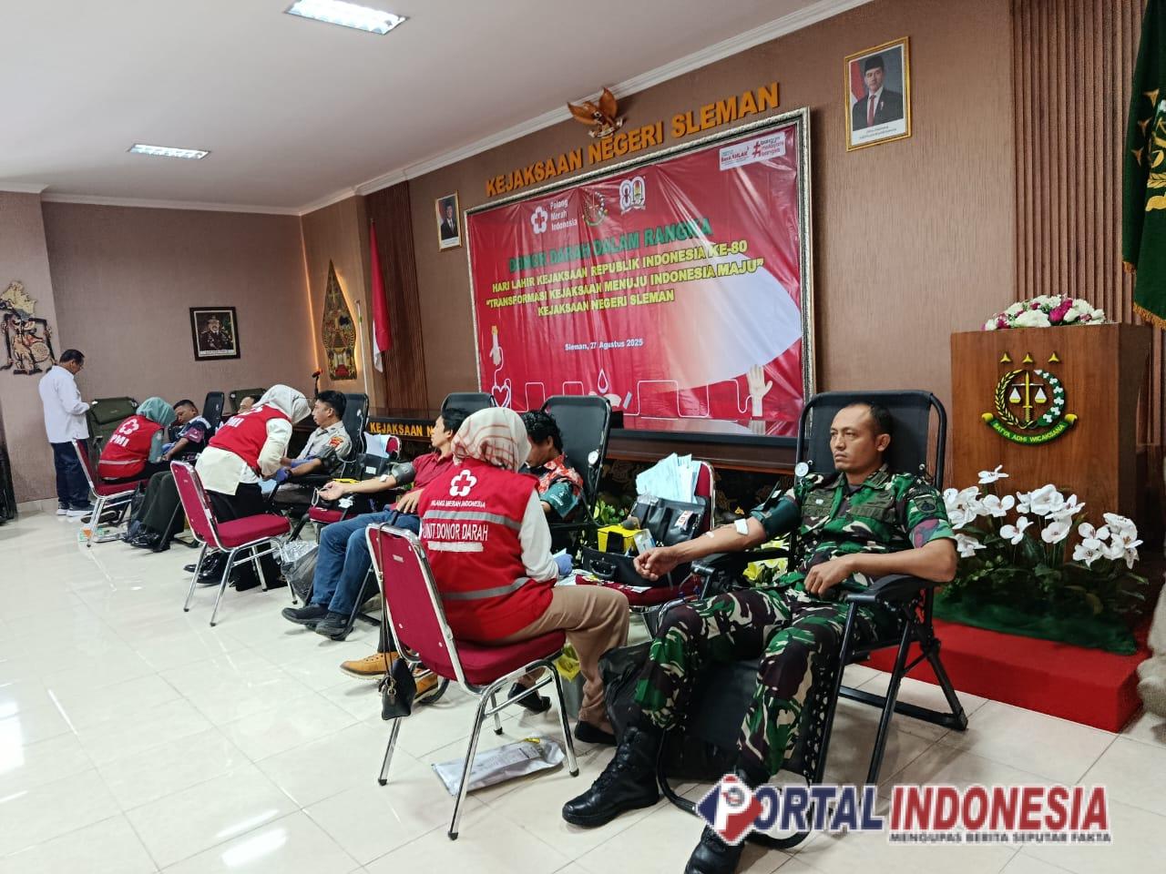 SLEMAN – Jelang Hari Lahir Kejaksaan yang diperingati tiap tanggal 2 September, Kejaksaan Negeri (Kejari) Kabupatren Sleman mengadakan kegiatan donor darah masal di Komplek Kantor Kejari Sleman, Rabu (27/8/2025).