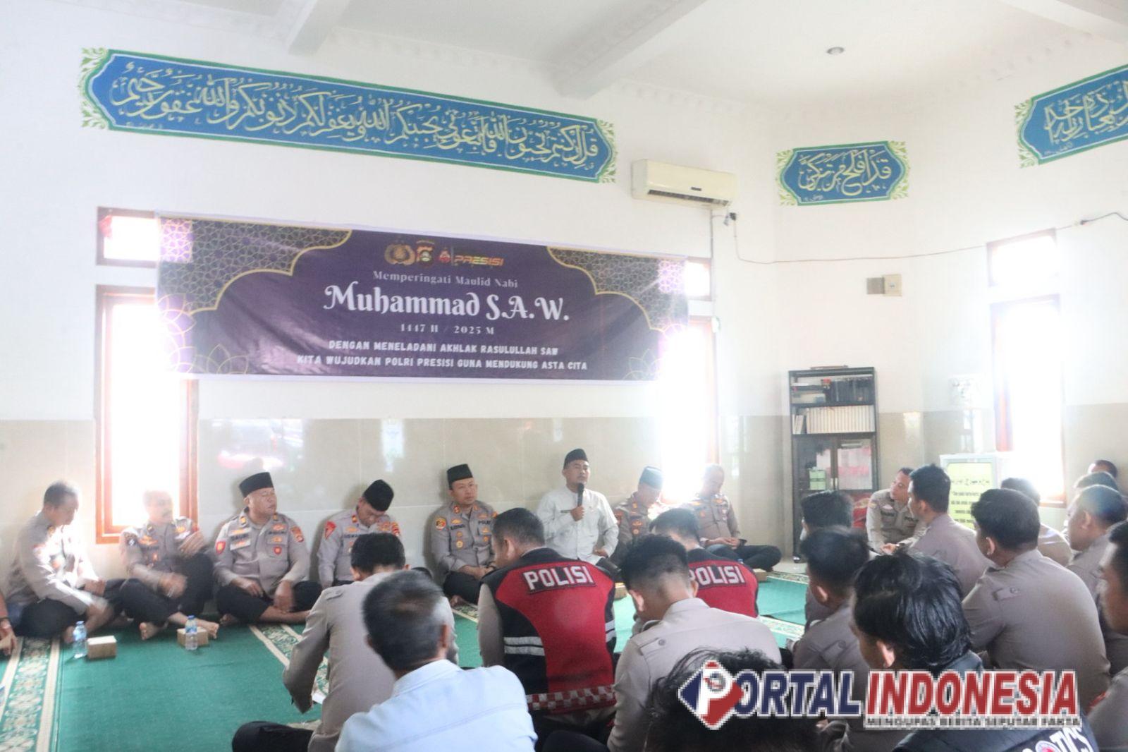 Dalam sambutannya, AKBP Novi Edyanto menekankan bahwa peringatan Maulid Nabi bukan sekadar mengenang kelahiran Rasulullah, tetapi juga menjadi momen untuk meneladani akhlak, kepemimpinan, dan semangat kebersamaan Nabi Muhammad SAW.