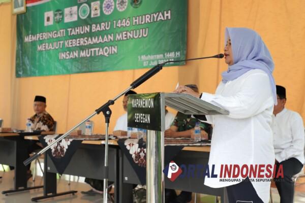 SLEMAN – Bupati Sleman Kustini Sri Purnomo menghadiri peringatan tahun baru Islam 1446 Hijriyah yang diselenggarakan Majelis Ulama Indonesia (MUI) Seyegan di Pendopo Kantor Kapanewon Seyegan, Kabupaten Sleman Minggu (7/7/2024).