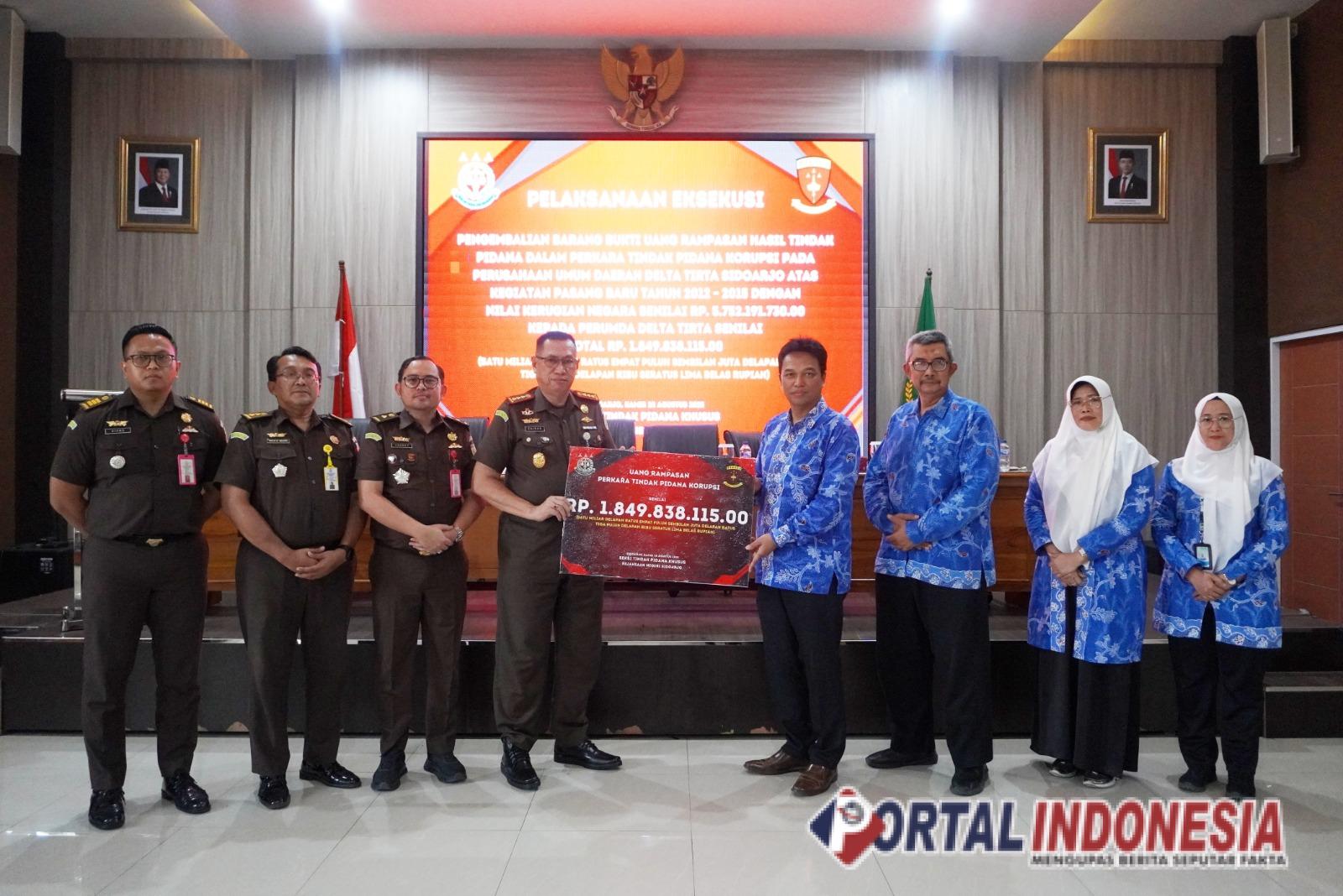 SIDOARJO – Upaya penyelamatan aset negara kembali membuahkan hasil. Perusahaan Umum Daerah (Perumda) Delta Tirta Sidoarjo resmi menerima pengembalian barang bukti berupa uang senilai Rp 1.849.838.115 dari Kejaksaan Negeri (Kejari) Sidoarjo. Penyerahan dilakukan secara simbolis dalam acara resmi di Aula Kejari Sidoarjo, Kamis (28/8/2025).