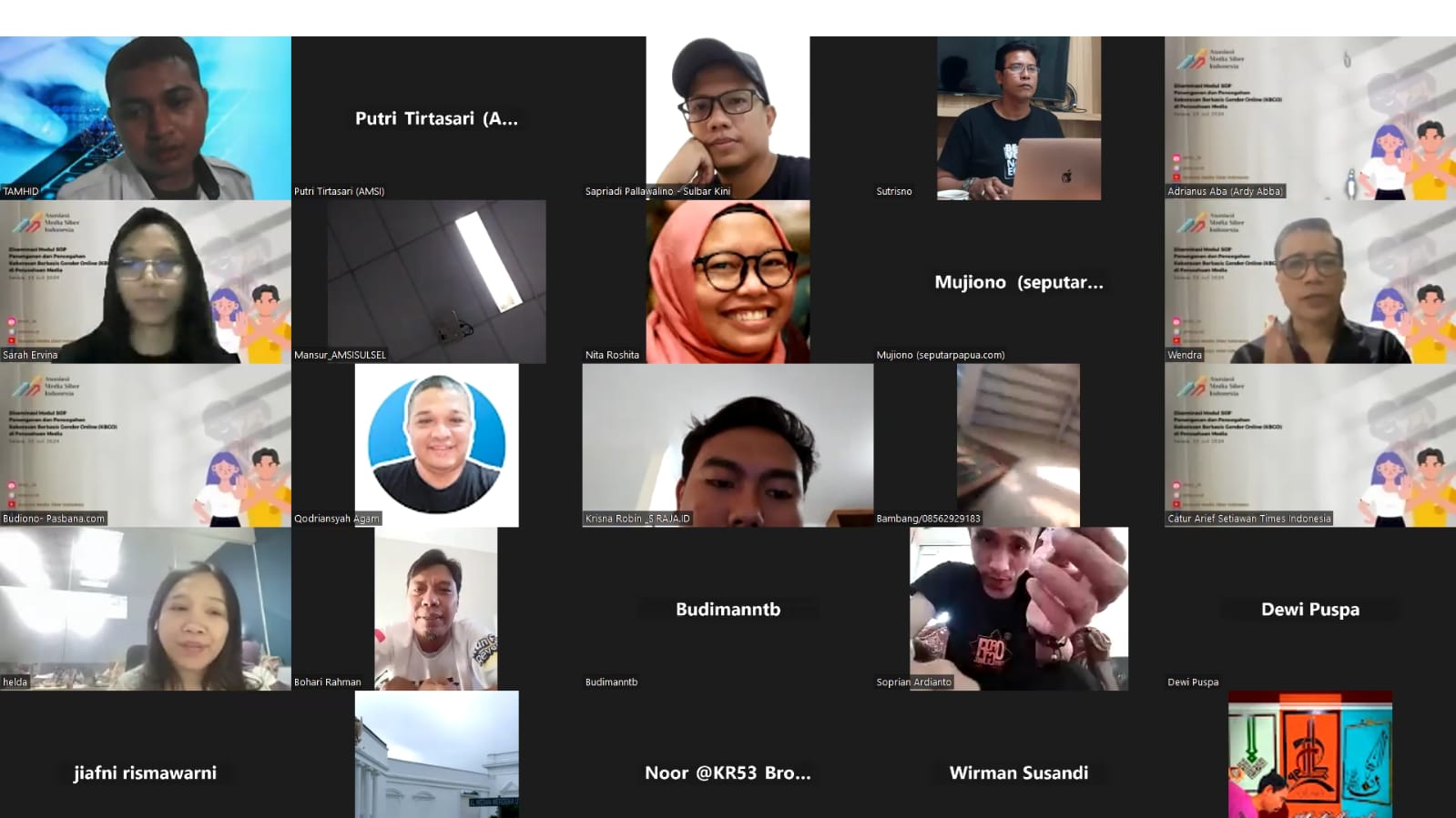 Kekerasan Berbasis Gender Online (KBGO) untuk Perusahaan Media secara daring. Kegiatan dilangsungkan secara daring,