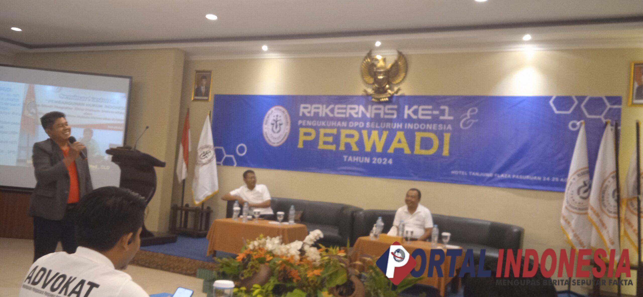 PASURUAN  — Perkumpulan Pengacara Pengawal Demokrasi Indonesia (PERWADI) menggelar Rapat Kerja Nasional (Rakernas) untuk pertama kalinya di Tanjung Plaza, Tretes, Pasuruan. Kegiatan ini berlangsung selama dua hari dan dihadiri oleh ratusan anggota PERWADI dari seluruh Indonesia. Dalam Rakernas ini, PERWADI juga secara resmi mengukuhkan Ketua Dewan Pimpinan Daerah (DPD) di setiap provinsi. Sabtu, (24/08/2024)
