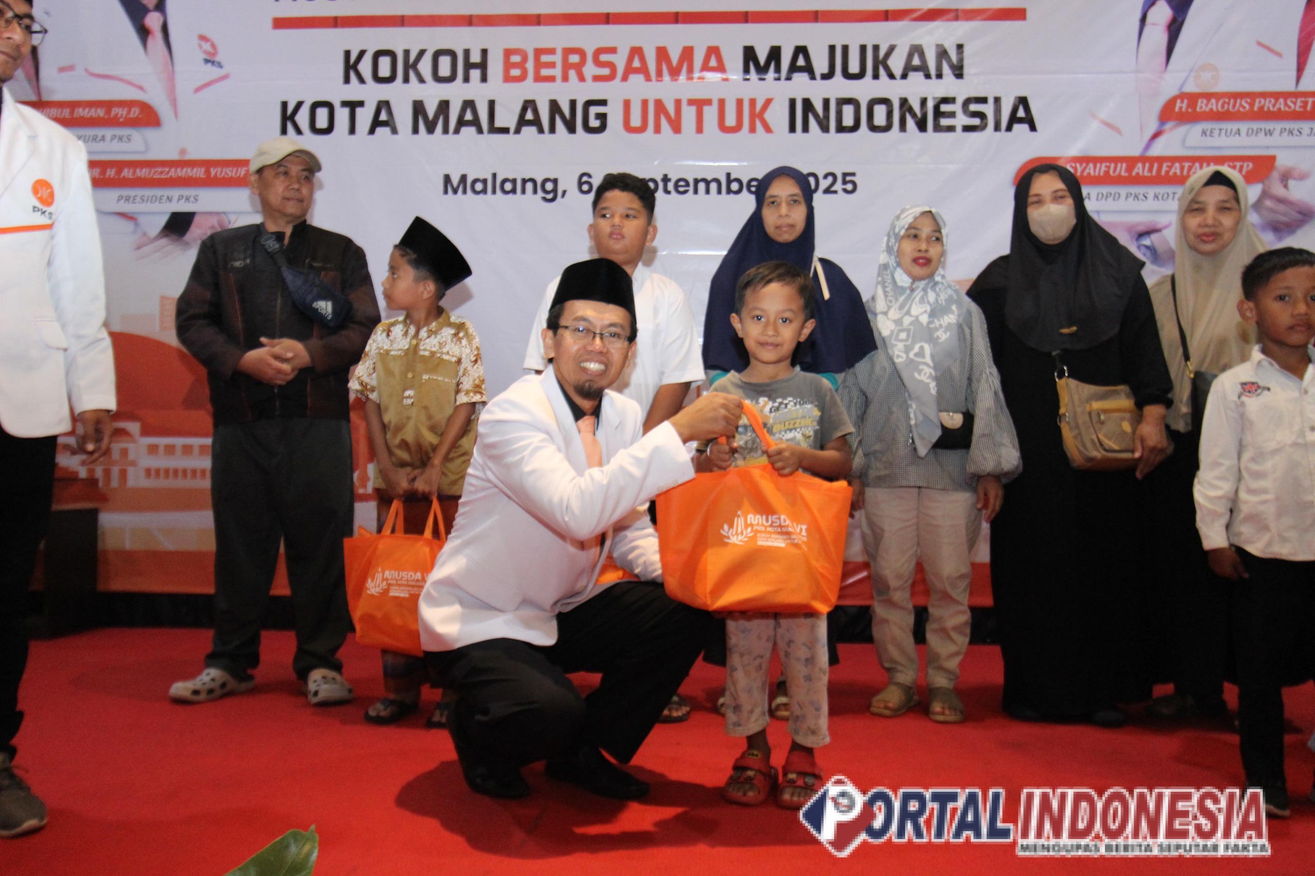 KOTA MALANG – Musyawarah Daerah (Musda) VI Partai Keadilan Sejahtera (PKS) Kota Malang tidak hanya menjadi ajang konsolidasi organisasi, tetapi juga dirangkai dengan kegiatan sosial. Dalam acara yang berlangsung pada Minggu (7/9/2025) itu, sebanyak 80 paket bantuan berupa santunan anak yatim dan sembako untuk dhuafa disalurkan sebagai bentuk kepedulian.