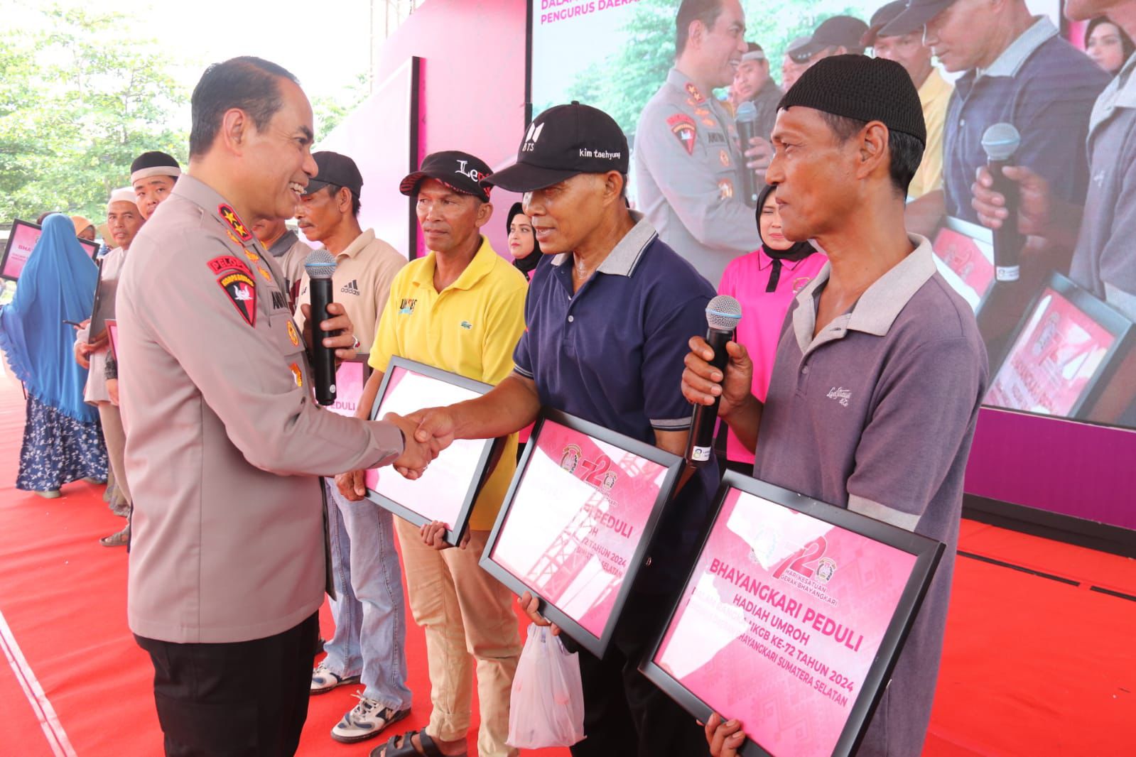 PALEMBANG — Puncak Hari Kesatuan Gerak Bhayangkari (HKGB) ke-72 Tahun 2024, Pengurus Bhayangkari Daerah Sumsel melakukan bakti sosial dan bakti kesehatan kepada 5.000 masyarakat.