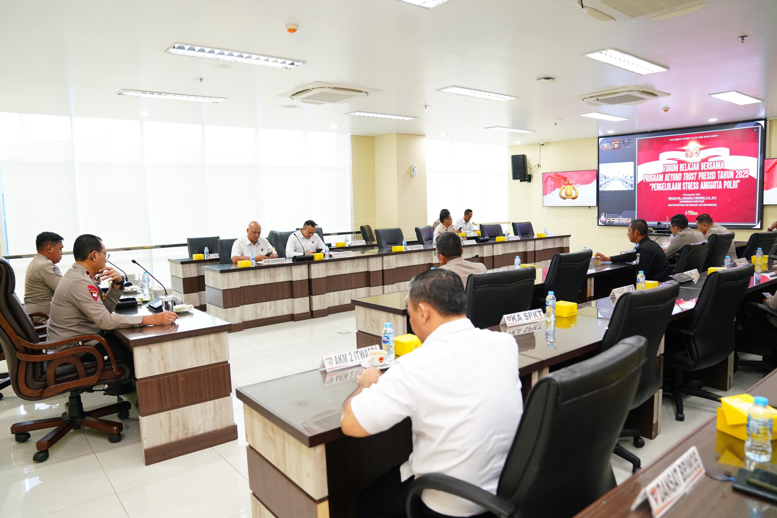 Forum Belajar Bersama ini digelar oleh Mabes Polri dengan dengan di buka langsung oleh Wakaposko Presisi Brigjen Pol. Dr. Indarto, S.H., S.Sos., S.I.K., M.Si. Dengan menyampaikan bahwa Kegiatan ini merupakan program kami dalam menjaga kesejahteraan anggota polri khususnya dalam hal mengontrol tingkat stress, dimana menjaga tingkat stress ini sangat penting dalam melaksanakan tugas sehari hari.