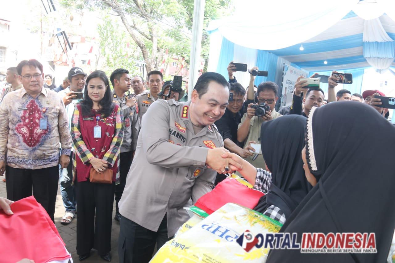 PALEMBANG — Polda Sumsel melakukan kick off kegiatan Gerakan Pangan Murah (GPM) yang dipusatkan di Mapolsek SU I Palembang, Kamis 14 Agustus 2025.