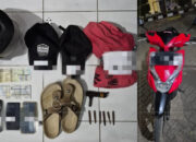 Barang bukti yang diamankan meliputi 17 unit sepeda motor, lima ekor ayam aduan, sembilan kurungan ayam, 22 kursi plastik, busa galangan, karpet, lampu sorot, buku catatan, serta perlengkapan lain yang digunakan di arena.