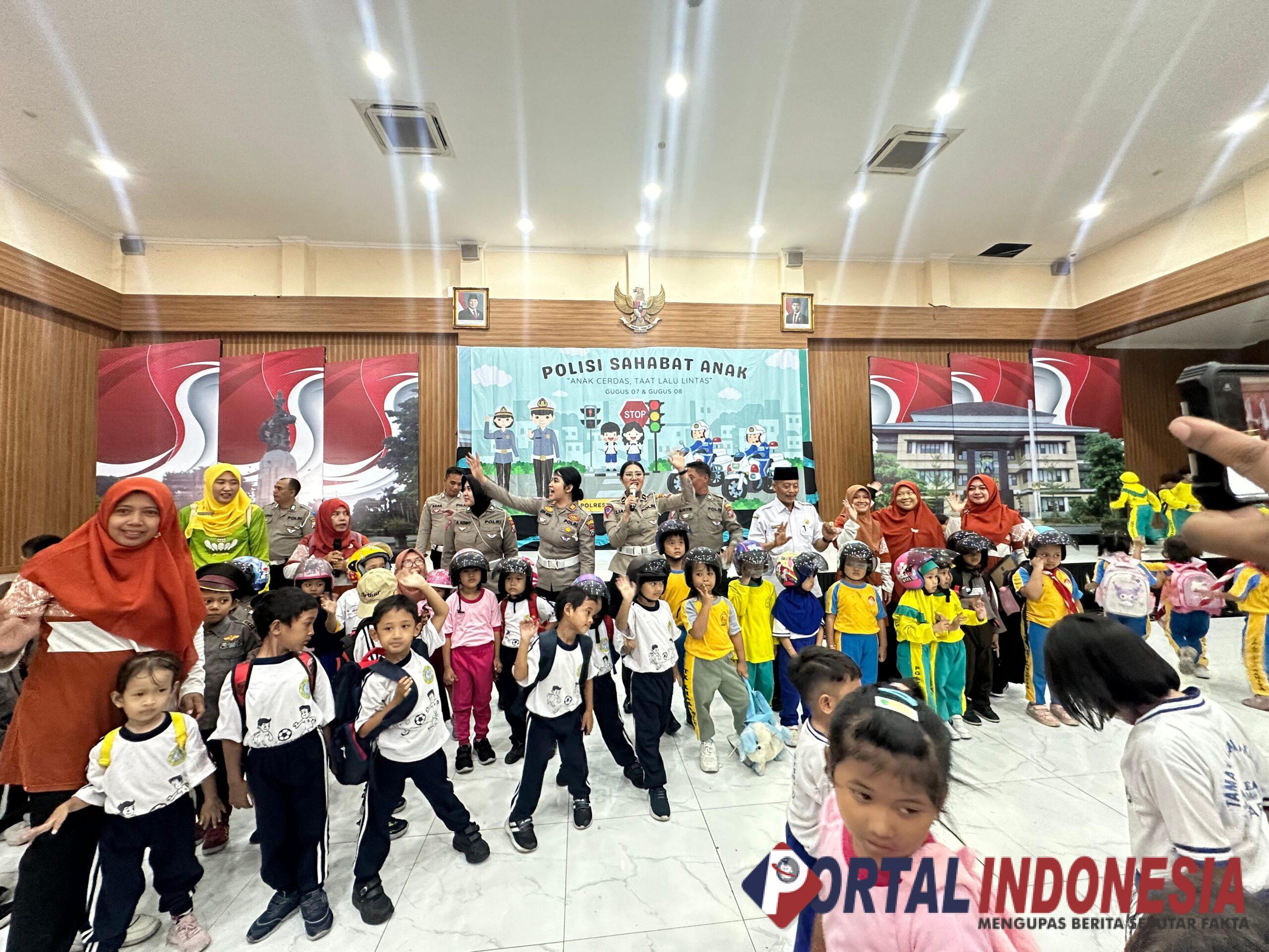 Interaksi yang hangat dan ramah antara polisi dan anak-anak ini diharapkan dapat membentuk kesan positif terhadap aturan lalu lintas, sekaligus menjadikan mereka generasi yang lebih peduli dengan keselamatan berkendara di masa depan.