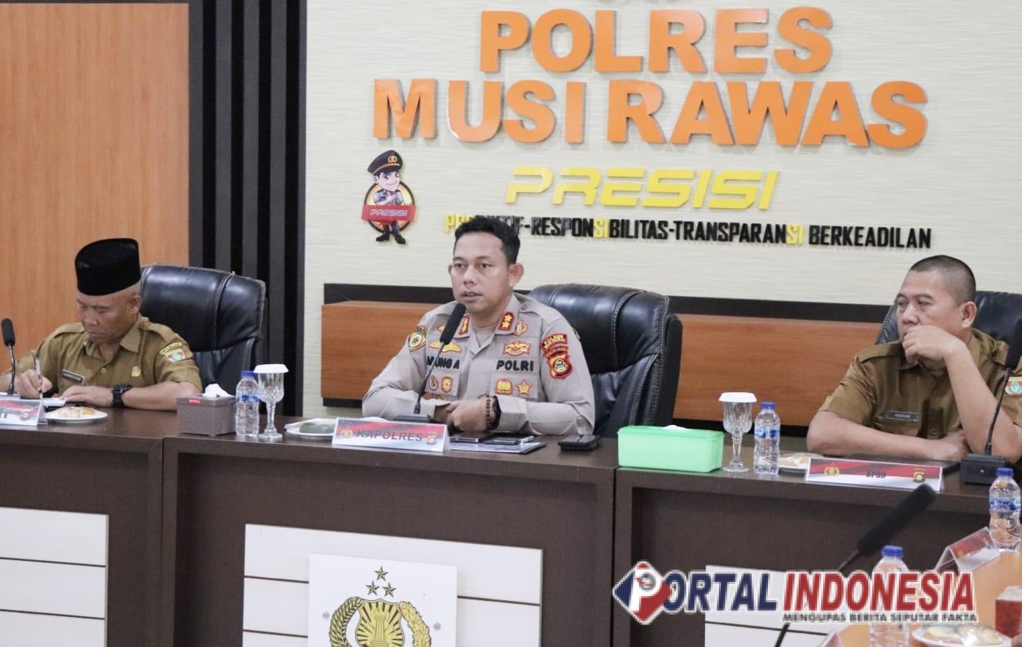 Rapat dipimpin Kapolres Musi Rawas, AKBP Agung Aditya Prananta, S.H., S.I.K., M.H., didampingi Staf Ahli Bupati Bidang Ekonomi, Keuangan, dan Pembangunan, Supardiyono. Sejumlah perwakilan organisasi perangkat daerah (OPD) turut hadir, di antaranya Kesbangpol, Diskominfo, Dinas Kesehatan, Damkar, BPBD, Dishub, hingga Basarnas Musi Rawas.