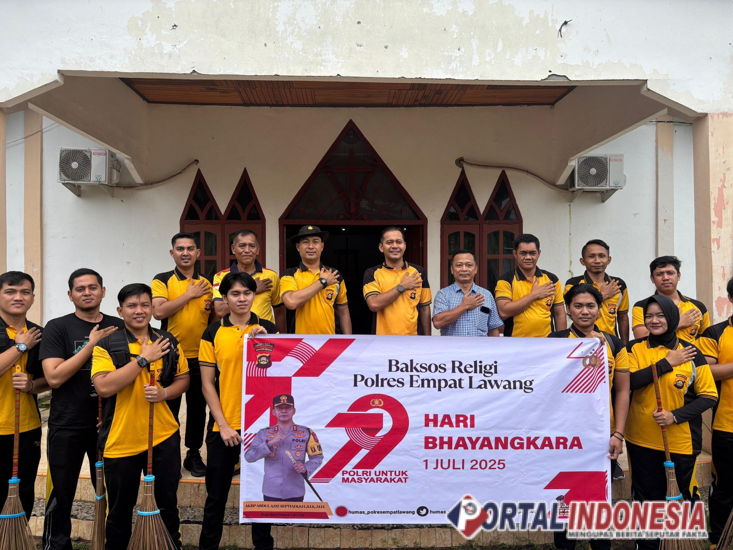 EMPAT LAWANG – Menyambut Hari Bhayangkara ke-79 tahun 2025, Polres Empat Lawang menunjukkan kepedulian nyata lewat aksi Bakti Kebersihan dan Bakti Sosial Religi yang digelar serentak di sejumlah tempat ibadah dan fasilitas umum, Selasa pagi (24/6).