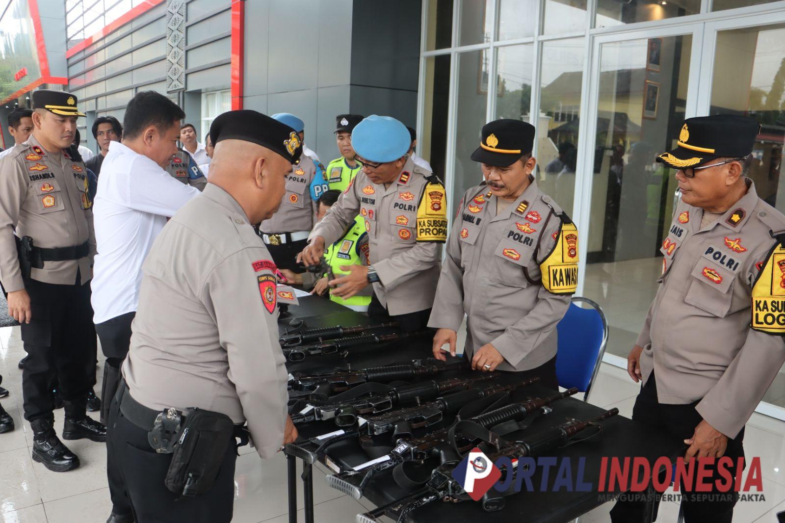 Kegiatan ini bertujuan memastikan kelengkapan administrasi, kelayakan senjata, serta kebersihan dan keamanan senpi yang digunakan dalam bertugas.