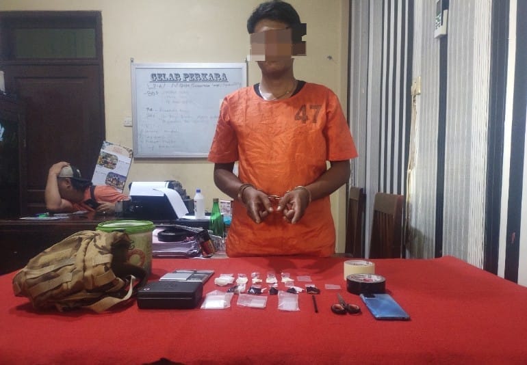 Saat dilakukan penggeledahan, polisi menemukan 9 paket plastik klip berisi sabu di dalam tas punggung, satu paket plastik klip tambahan, serta dua timbangan digital yang disembunyikan dalam kaleng plastik di ruang tengah rumah tersangka.