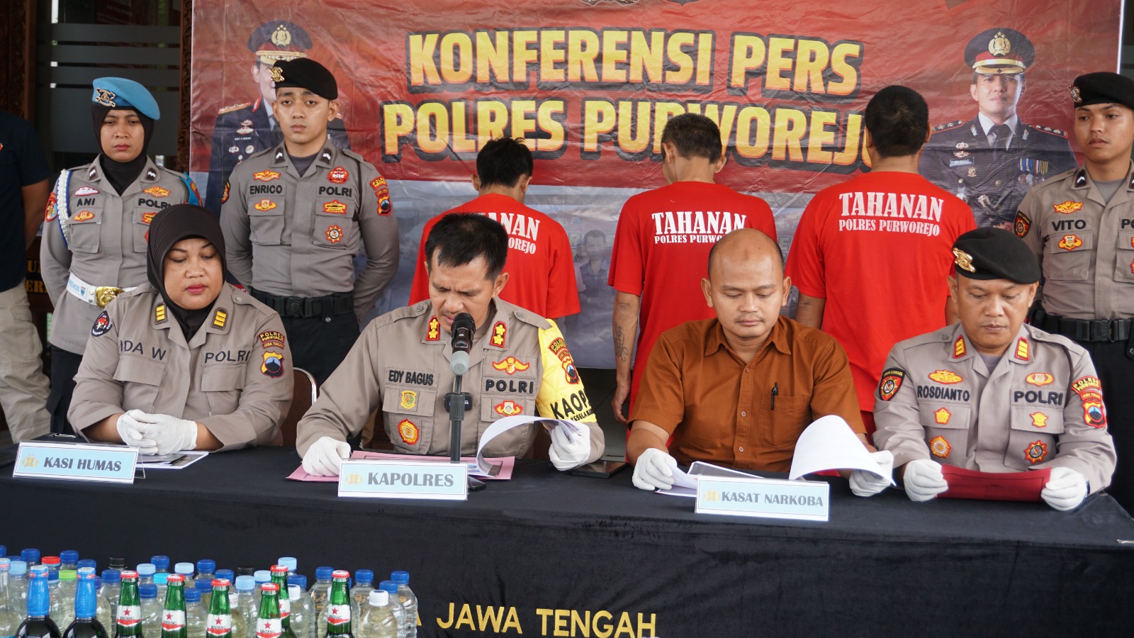 Kapolres Purworejo, AKBP Edy Bagus Sumantri, S.I.K., didampingi Kasat Narkoba AKP Primadhana Bayu Kuncoro, S.Pd., M.A.P., serta Kasi Humas AKP Ida Widaastuti, S.H., M.A.P., menjelaskan bahwa pengungkapan kasus ini bermula dari laporan masyarakat terkait adanya peredaran obat ilegal yang tidak memenuhi standar keamanan, khasiat, dan mutu.