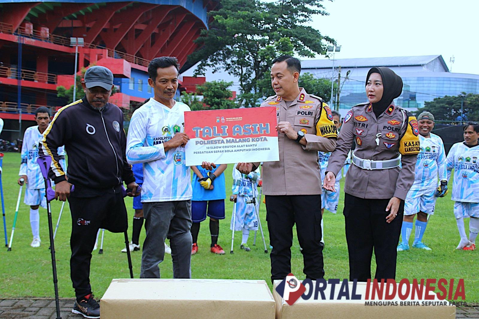 KOTA MALANG – Dalam wujud nyata kepedulian terhadap olahraga disabilitas, Polresta Malang Kota kembali menunjukkan komitmennya. Melanjutkan semangat yang digagas Kapolresta sebelumnya, Kombes Pol Budi Hermanto, kini Kombes Pol Nanang Haryono menyerahkan bantuan Elbow Crutch (tongkat siku) kepada para pemain sepak bola amputasi di bawah naungan Persatuan Sepak Bola Amputasi Indonesia (PSAI), Rabu (11/12/2024).