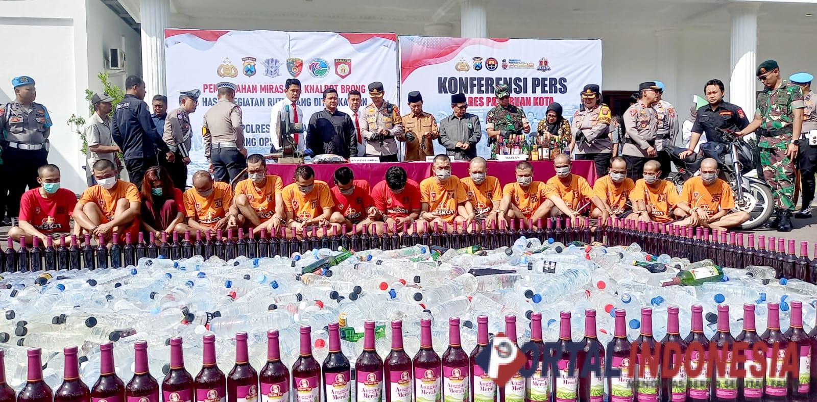 Hasil operasi tersebut disampaikan dalam konferensi pers, Kamis (20/3), bersamaan dengan pemusnahan ribuan botol minuman keras (Miras) serta puluhan knalpot brong hasil razia.