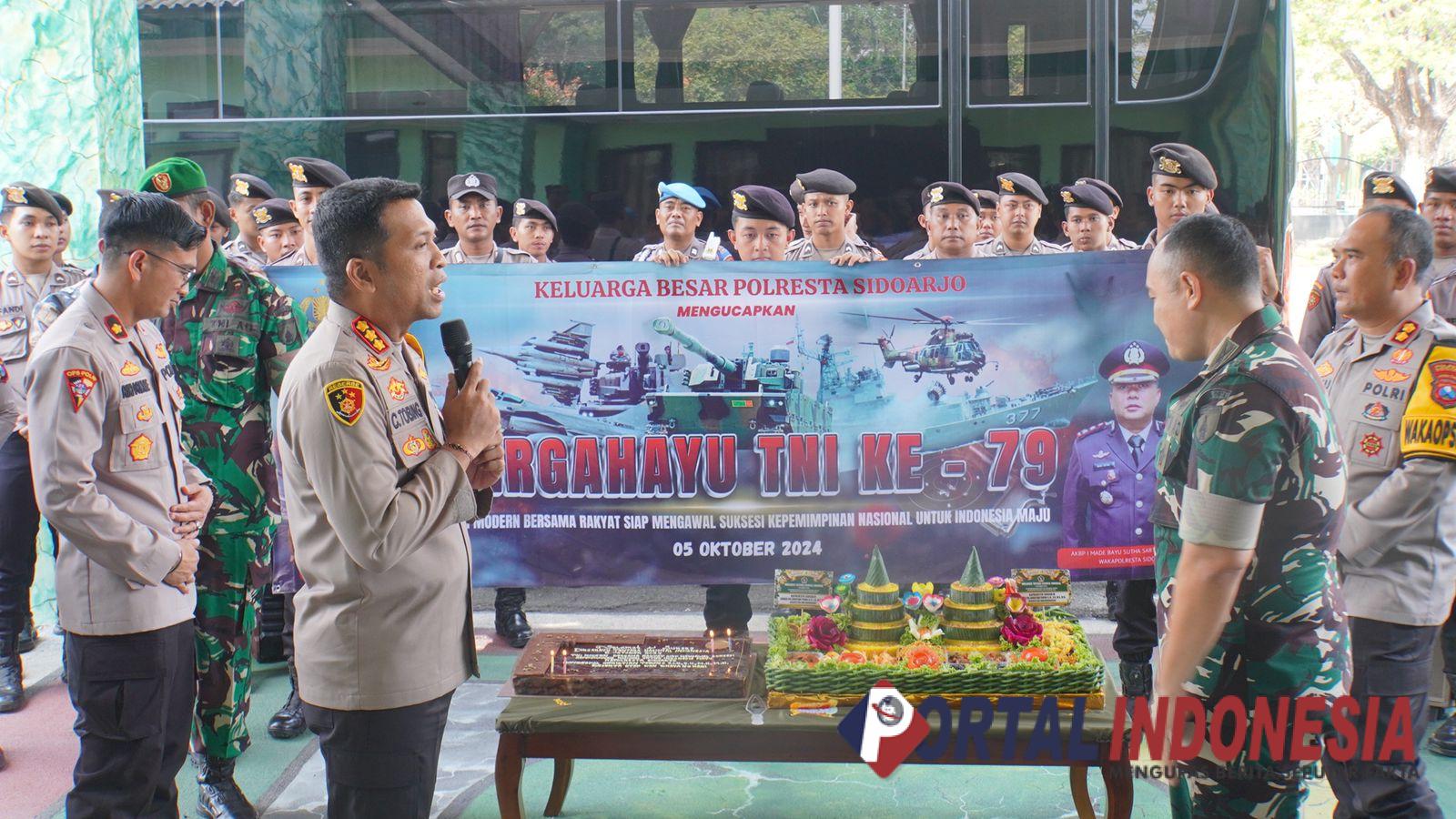 SIDOARJO — Dalam rangka memperingati Hari Ulang Tahun (HUT) Tentara Nasional Indonesia (TNI) ke-79 pada 5 Oktober 2024, Polresta Sidoarjo memperkuat sinergitas TNI-Polri dengan memberikan kejutan kepada jajaran TNI di Kabupaten Sidoarjo.