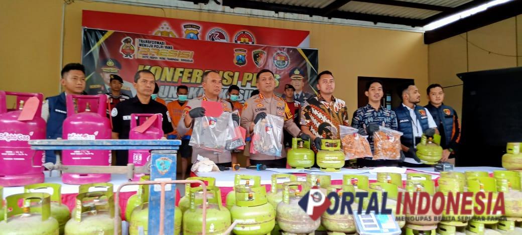 Dalam operasi ini, polisi menyita ratusan tabung LPG berbagai ukuran, alat pemindah gas seperti jarum besar dan kecil, segel tabung, selang regulator, timbangan, serta dua mobil yang digunakan untuk distribusi.