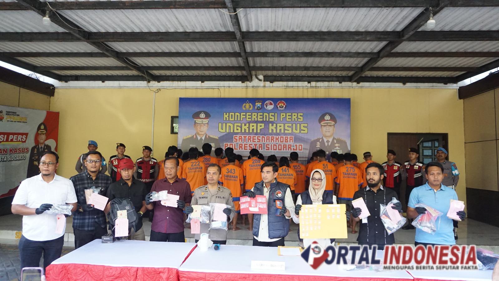 SIDOARJO – Dalam rentang waktu kurang dari dua bulan, Satuan Reserse Narkoba (Satresnarkoba) Polresta Sidoarjo mencetak prestasi signifikan. Sebanyak 59 kasus narkotika berhasil diungkap dari periode 25 Mei hingga 15 Juli 2025, dengan 81 tersangka diamankan. Rinciannya, 77 laki-laki dan 4 perempuan.