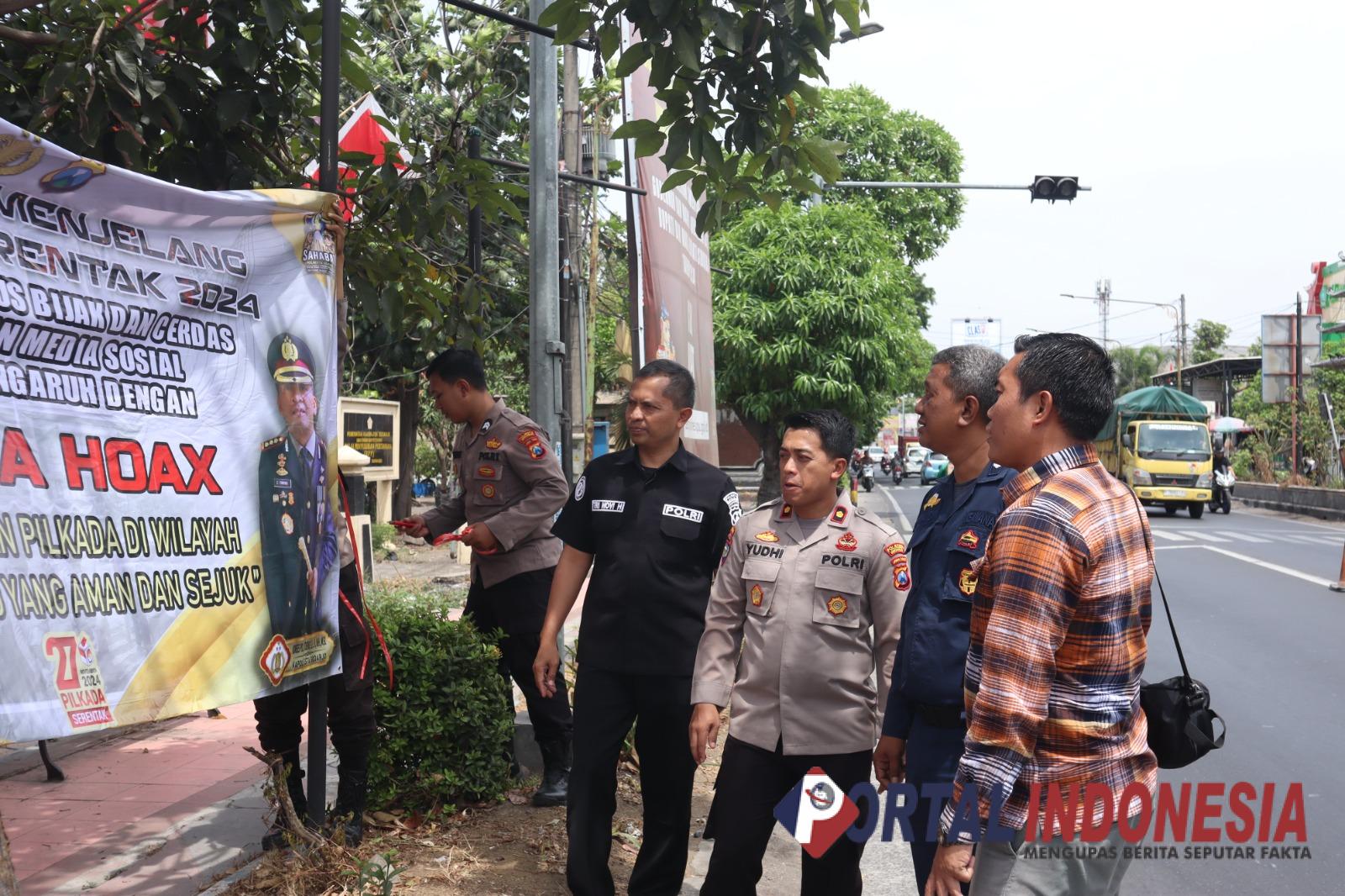 SIDOARJO — Himbauan wujudkan Pilkada Serentak 2024 bebas dari penyebarluasan informasi hoaks dan suasana yang damai, terpasang di sejumlah titik di 18 kecamatan se-Kabupaten Sidoarjo.