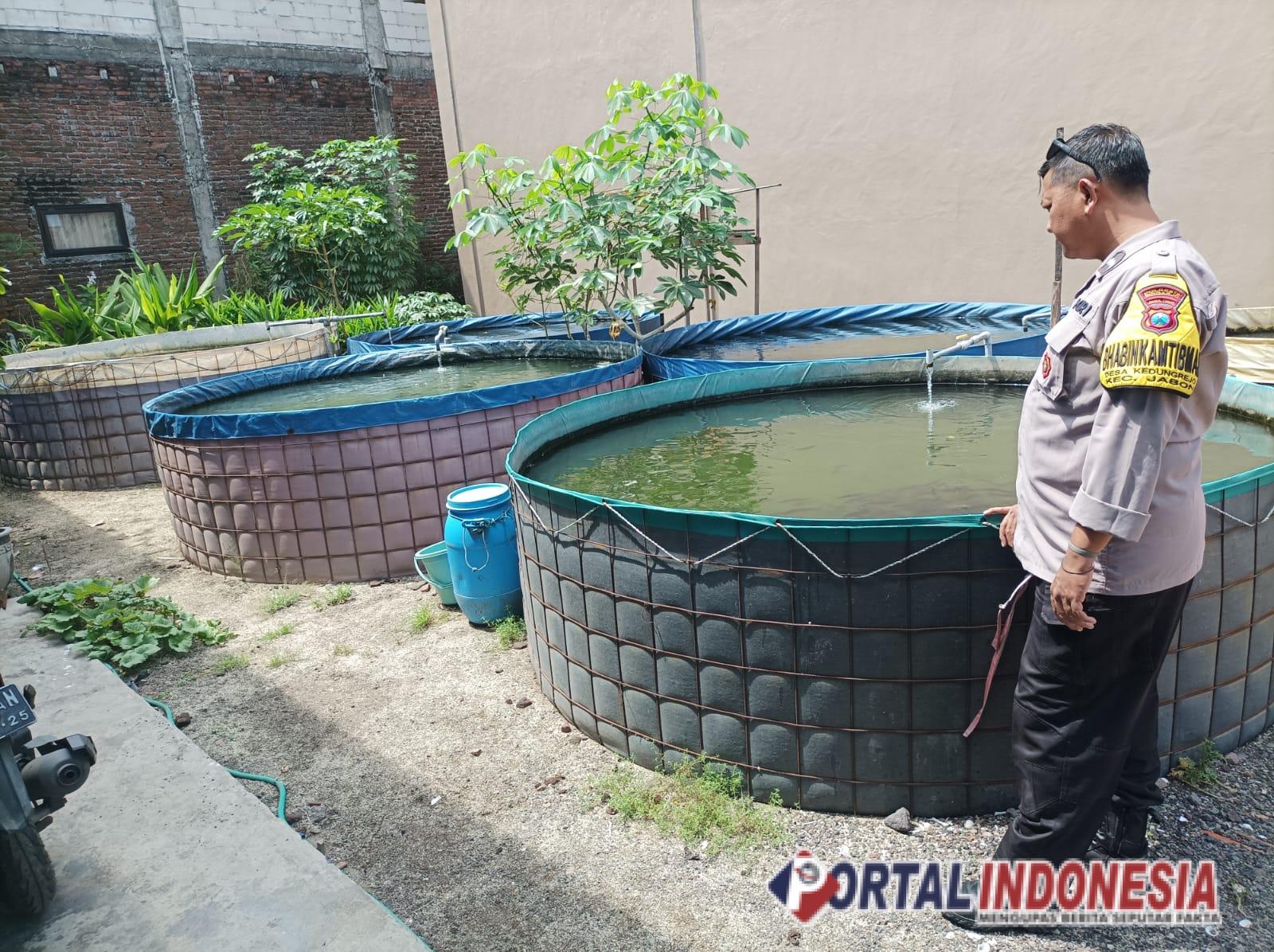 SIDOARJO —  Dalam rangka mendukung program ketahanan pangan Polresta Sidoarjo Polda Jawa Timur di wilayah pedesaan, Bhabinkamtibmas Desa Kedungrejo, Aipda M. Heri Kiswanto, melakukan pengecekan langsung ke lahan pekarangan warga yang digunakan untuk budidaya ikan lele.