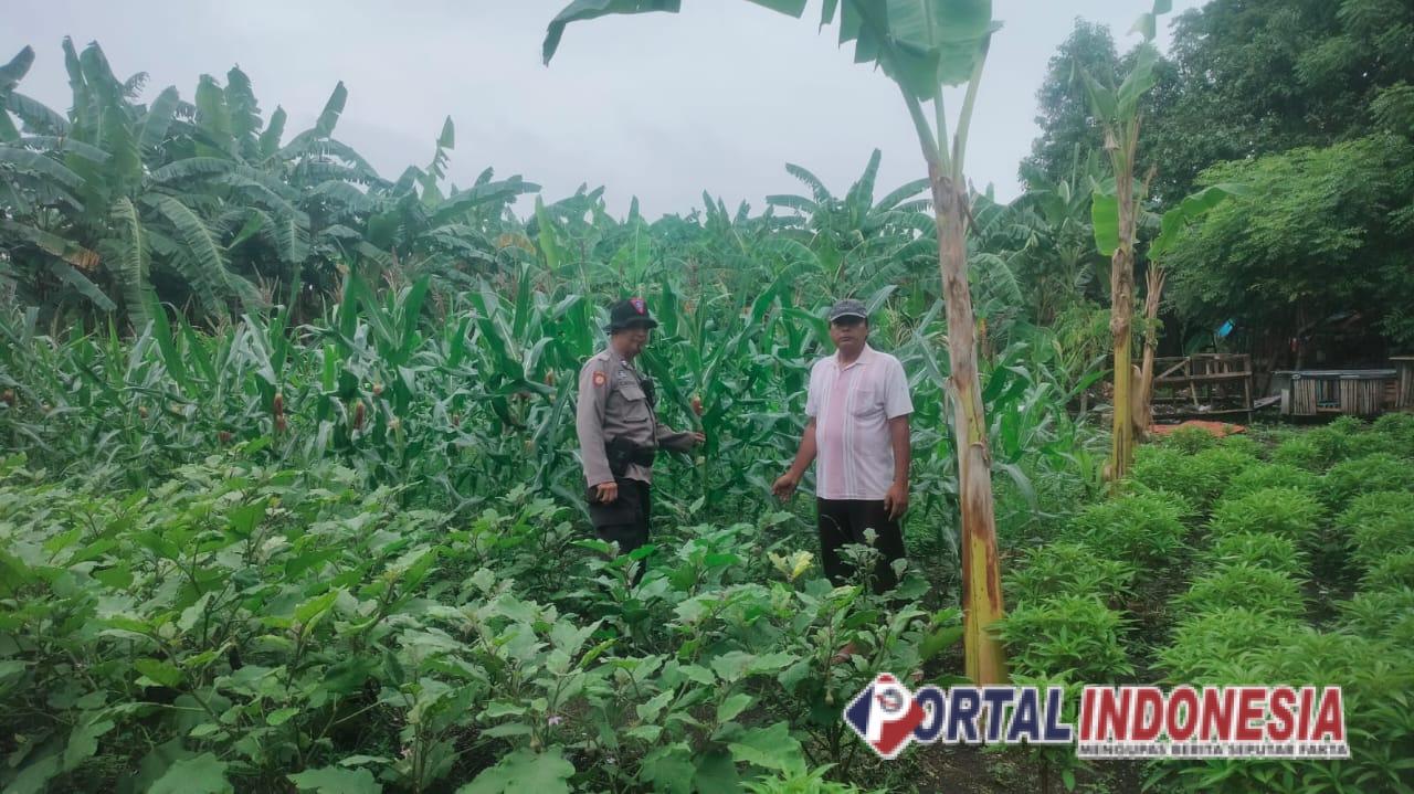 Kapolsek Krian, Kompol IGP Atma Giri, bersama Bhabinkamtibmas Aipda Bachtiyar, turun langsung ke perkebunan warga di Kelurahan Tambak Kemeraan, Kecamatan Krian.