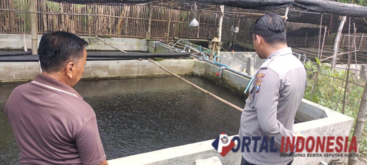 Bhabinkamtibmas Desa Kedung Kembar, Aipda Samsul Huda, terjun langsung memberikan pendampingan kepada warga dalam mengelola kolam lele di pekarangan rumah.