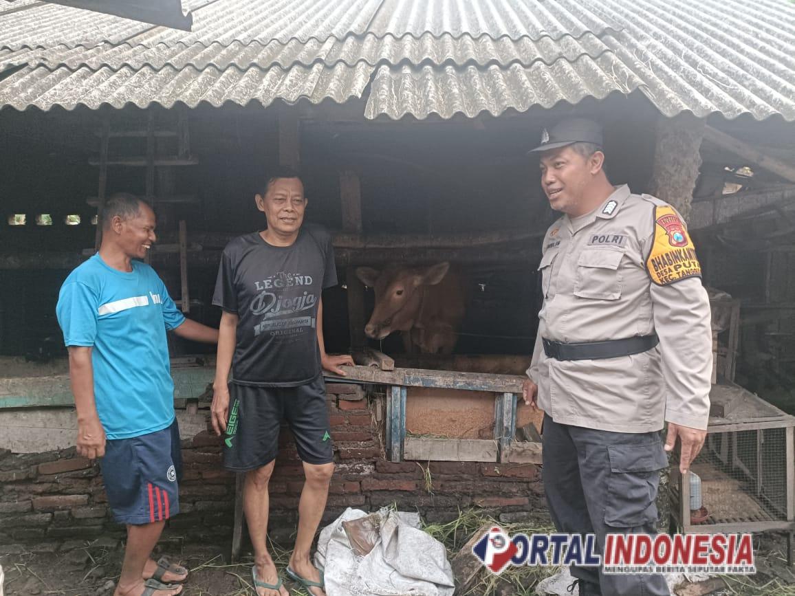 Wujud Polisi Cinta Petani Bripka Chandra melaksanakan kegiatan patroli sambang desa sekaligus mengecek dan membantu perawatan peternakan sapi milik warga Desa Putat, Kecamatan Tanggulangin.