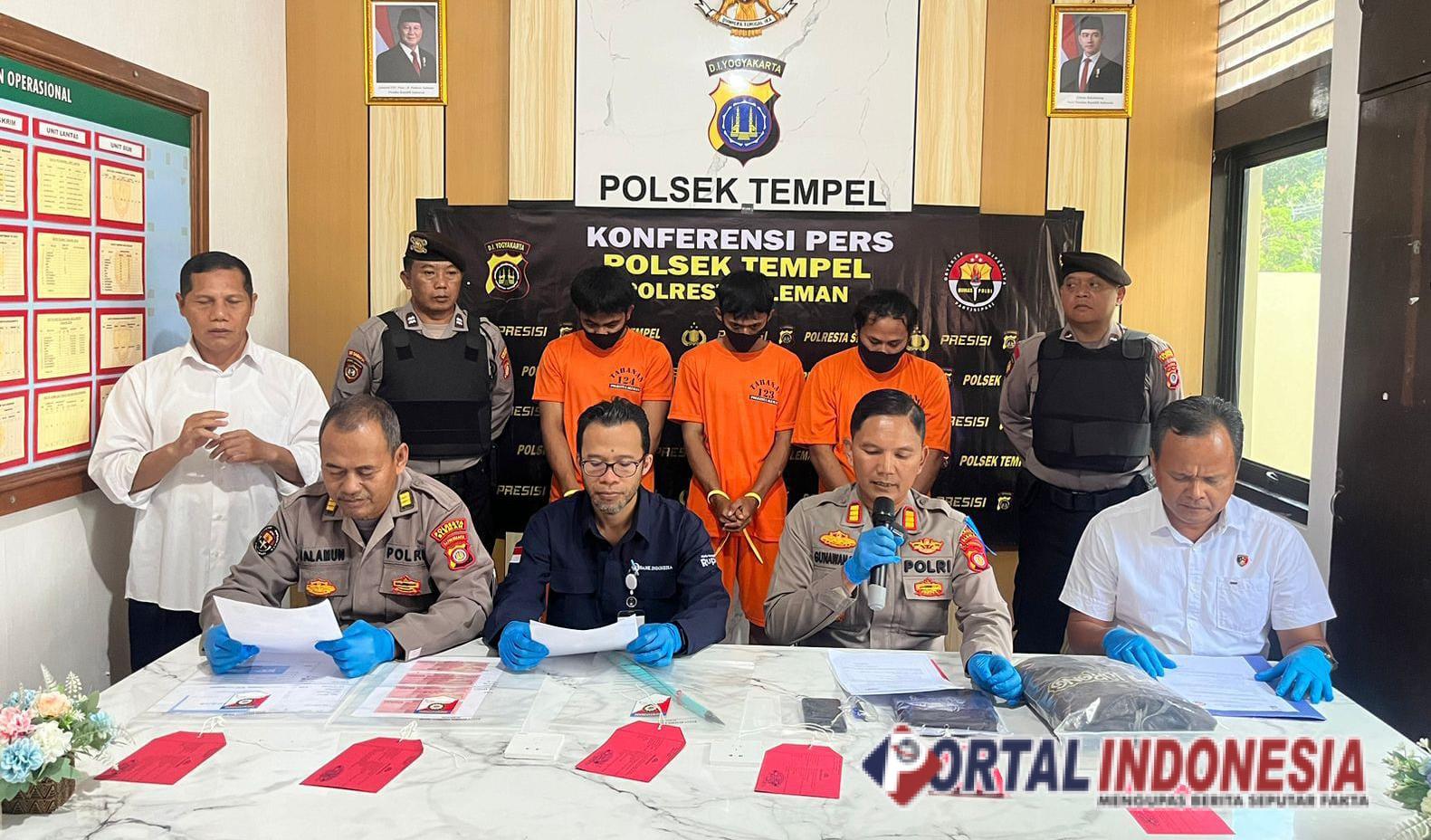 Ketiganya ditangkap Unit Reskrimn Polsek Tempel di wilayah Kabupaten Magelang, Jawa Tengah pada 19 Juni 2025, dan kini ketiga pelaku yang telah ditetepkan sebagai tersangka tersebut diamankan di Mapolsek Tempel.