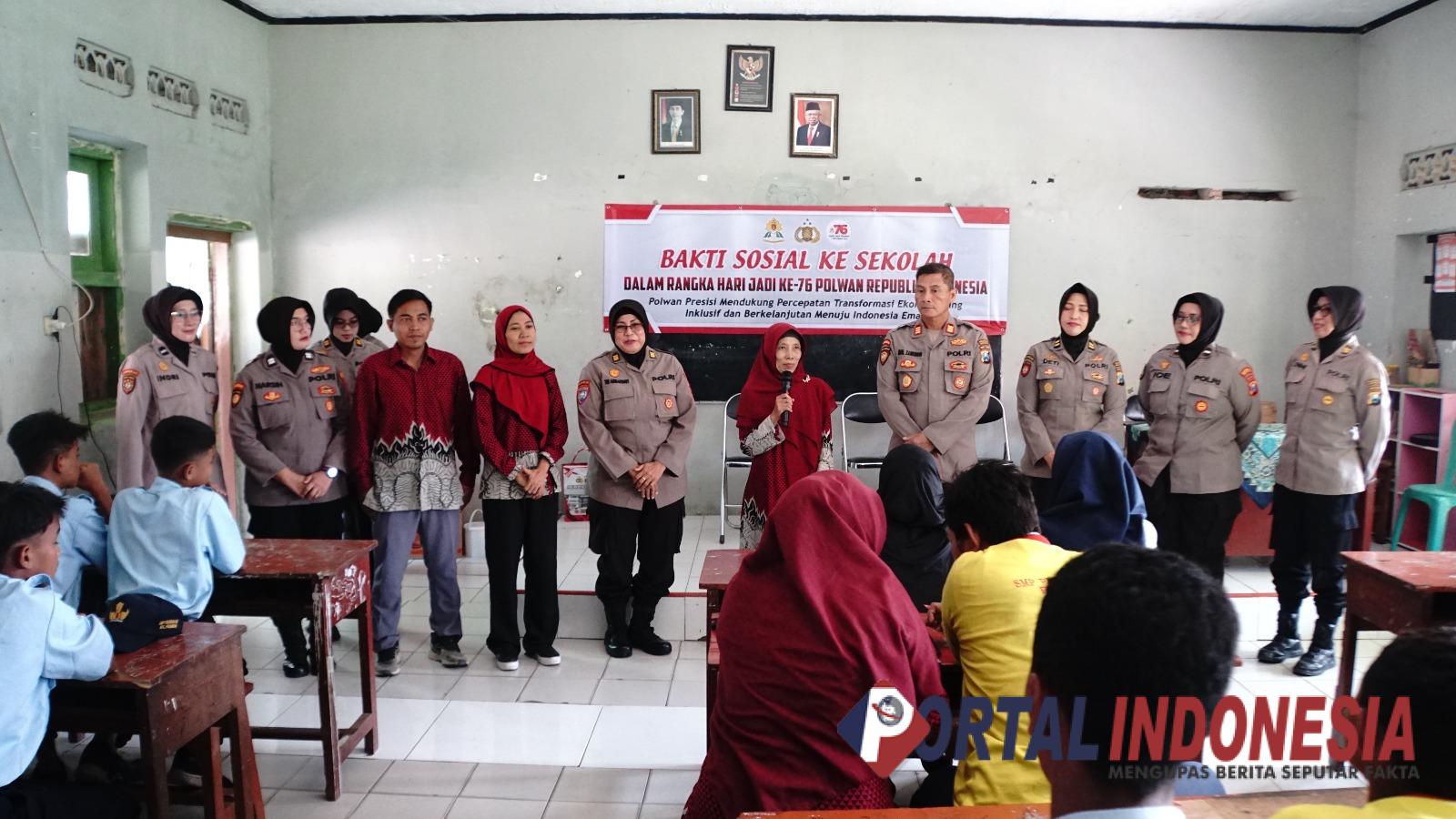 SIDOARJO — Polisi Wanita (Polwan) Polresta Sidoarjo, pada Kamis (15/8/2024), melaksanakan bakti sosial di SMP Perjuangan, Prambon. Pada kesempatan ini juga diberikan sosialisasi tertib berlalu lintas dan bahaya kenakalan remaja.