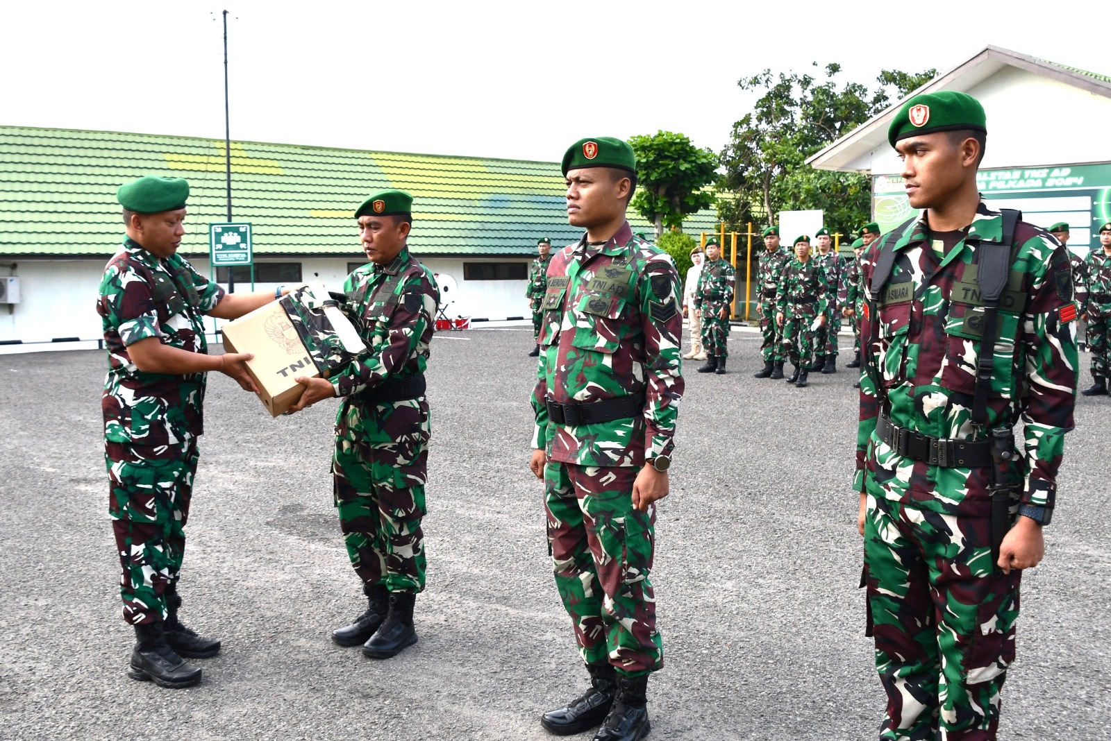 PALEMBANG — Kasilog Kasrem 044/Gapo Kolonel Czi Bintarto Joko Yulianto mewakili Danrem 044/Gapo, membagikan Kaporlap (Perlengkapan Perorangan Lapangan) dari Kasad Jenderal TNI Maruli Simanjuntak, bertempat di lapangan Apel makorem 044/Gapo Jl. Jenderal Sudirman Km. 4 Kota Palembang, Senin (25/11/2024).