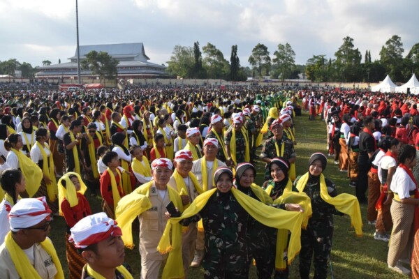 PURWOKERTO — Ratusan prajurit dan PNS Makorem 071/Wijayakusuma aktif berpartisipasi dalam gelaran seni budaya 10.000 Lengger Bicara yang diselenggarakan oleh Yayasan Rumah Lengger Banyumas didukung oleh Pemerintah Kabupaten Banyumas dalam rangka mempromosikan potensi Kabupaten Banyumas, khususnya potensi pariwisata dan ekonomi kreatif di GOR Satria Purwokerto. Sabtu (22/6/24)