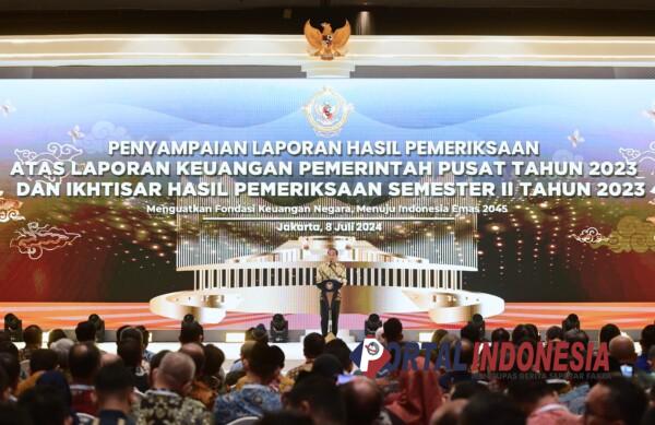 Dalam sambutannya, Presiden Republik Indonesia (RI), Joko Widodo menyampaikan apresiasinya kepada jajaran pemerintah pusat dan daerah atas predikat Wajar Tanpa Pengecualian (WTP) dalam laporan keuangan pemerintah tahun 2023.