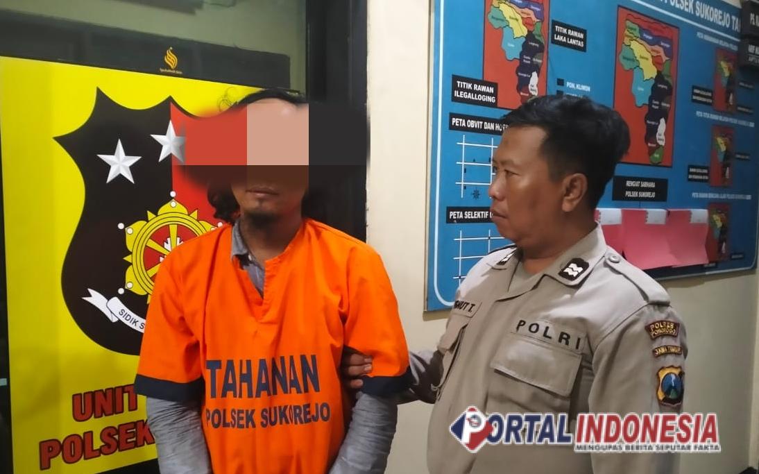 Pelaku saat diamankan aparat kepolisian Polsek Sukorejo