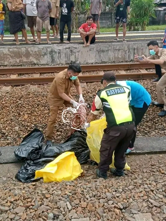 Petugas mengevakusi jasad korban tertabrak kereta api (Ist)
