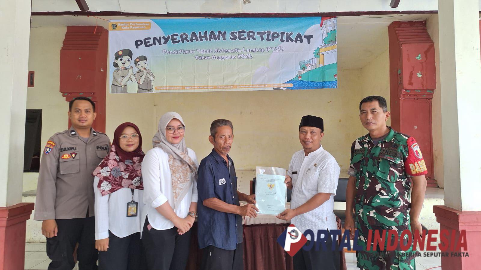 PASURUAN – Kantor Pertanahan (Kantah) Kota Pasuruan, Jawa Timur telah melaksanakan kegiatan penyerahan Sertipikat Pendaftaran Tanah Sistematis Lengkap (PTSL) Tahun Anggaran 2024 di dua lokasi kecamatan berbeda yakni di Kelurahan Bugul Lor, Kecamatan Panggungrejo dan di Kelurahan Randusari, Kecamatan Gadingrejo, Kota Pasuruan, pada hari Rabu (11/12/2024) kemarin.