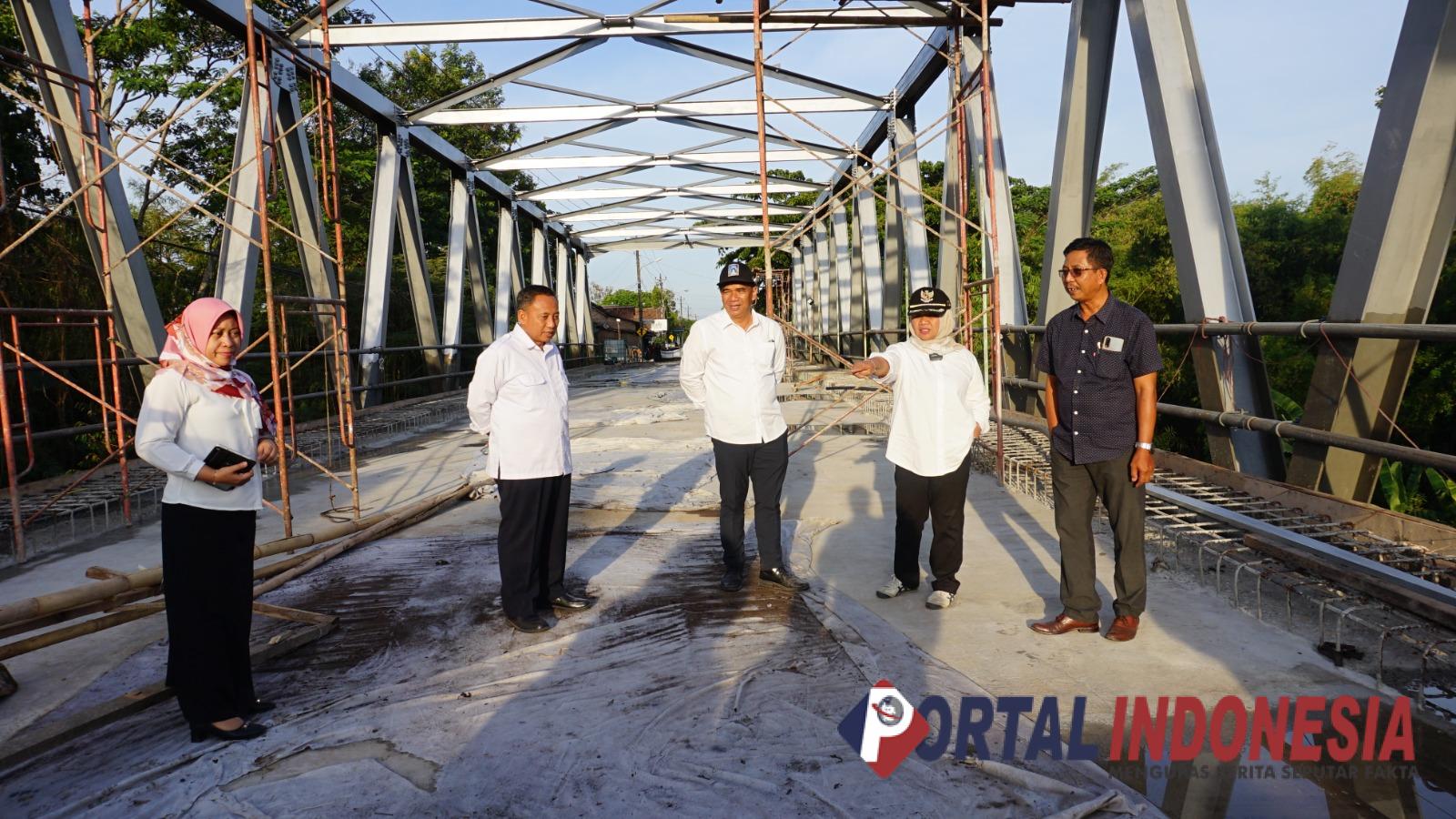 Bupati Sleman Kustini Sri Purnomo (dua dari kanan) saat meninjau pembangunan jembatan Tulung di Kalasan (Brd/Portal Indonesia)