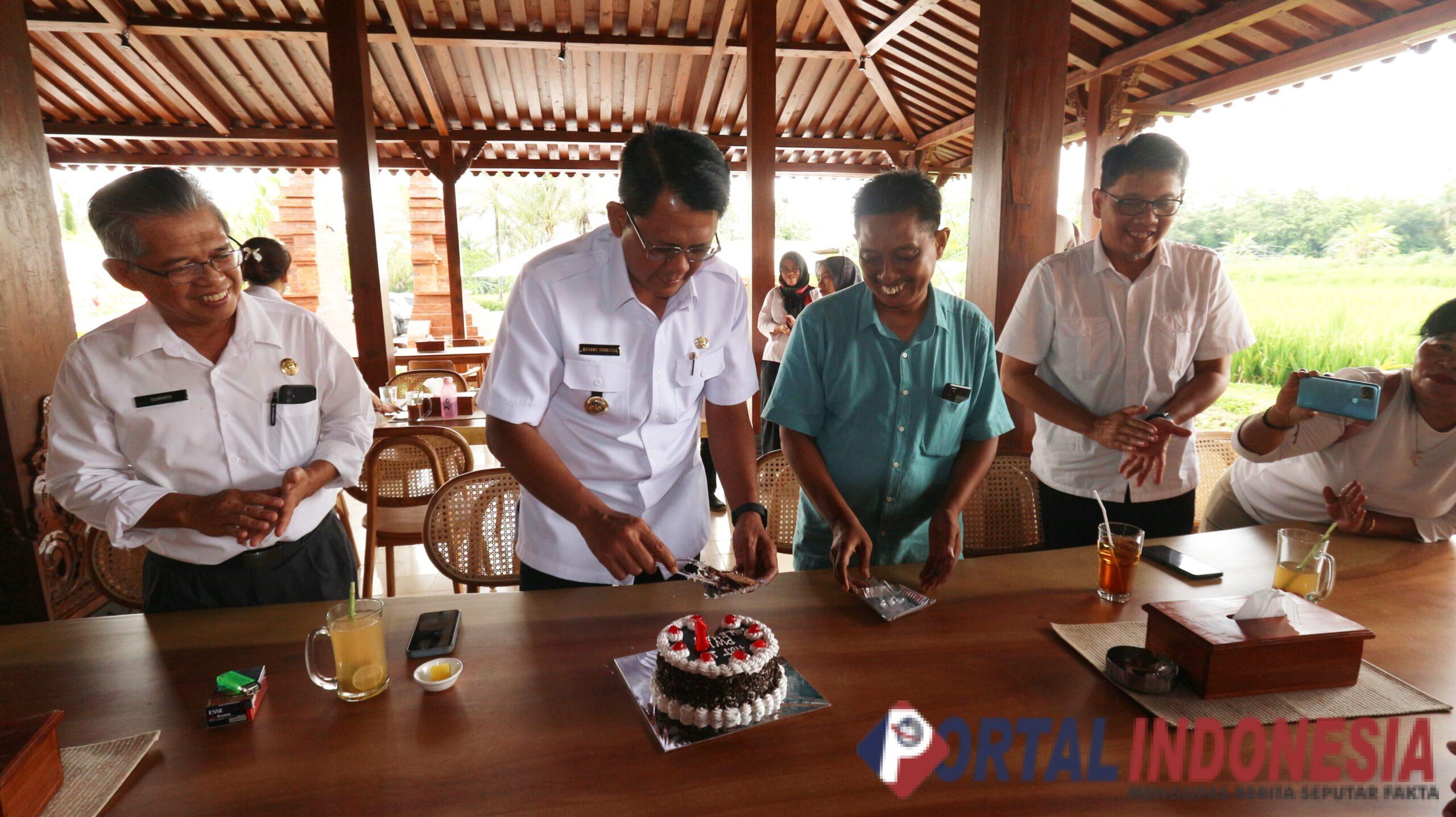 Pada kesempatan itu, Danang Maharsa didampingi Sekretaris Daerah (Sekda) Sleman, Susmiarto, memotong kue ulang tahun yang diserahkan kepada Ketua PWI Kabupaten Sleman, Wisnu Wardhana.
