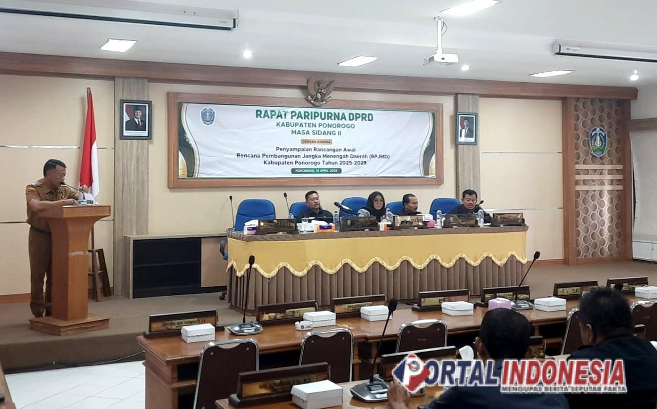 PONOROGO – Rapat paripurna dilaksanakan DPRD Ponorogo dengan agenda penyampaian Rencana Pembangunan Jangka Menengah Daerah (RPJMD) tahun 2025-2029.