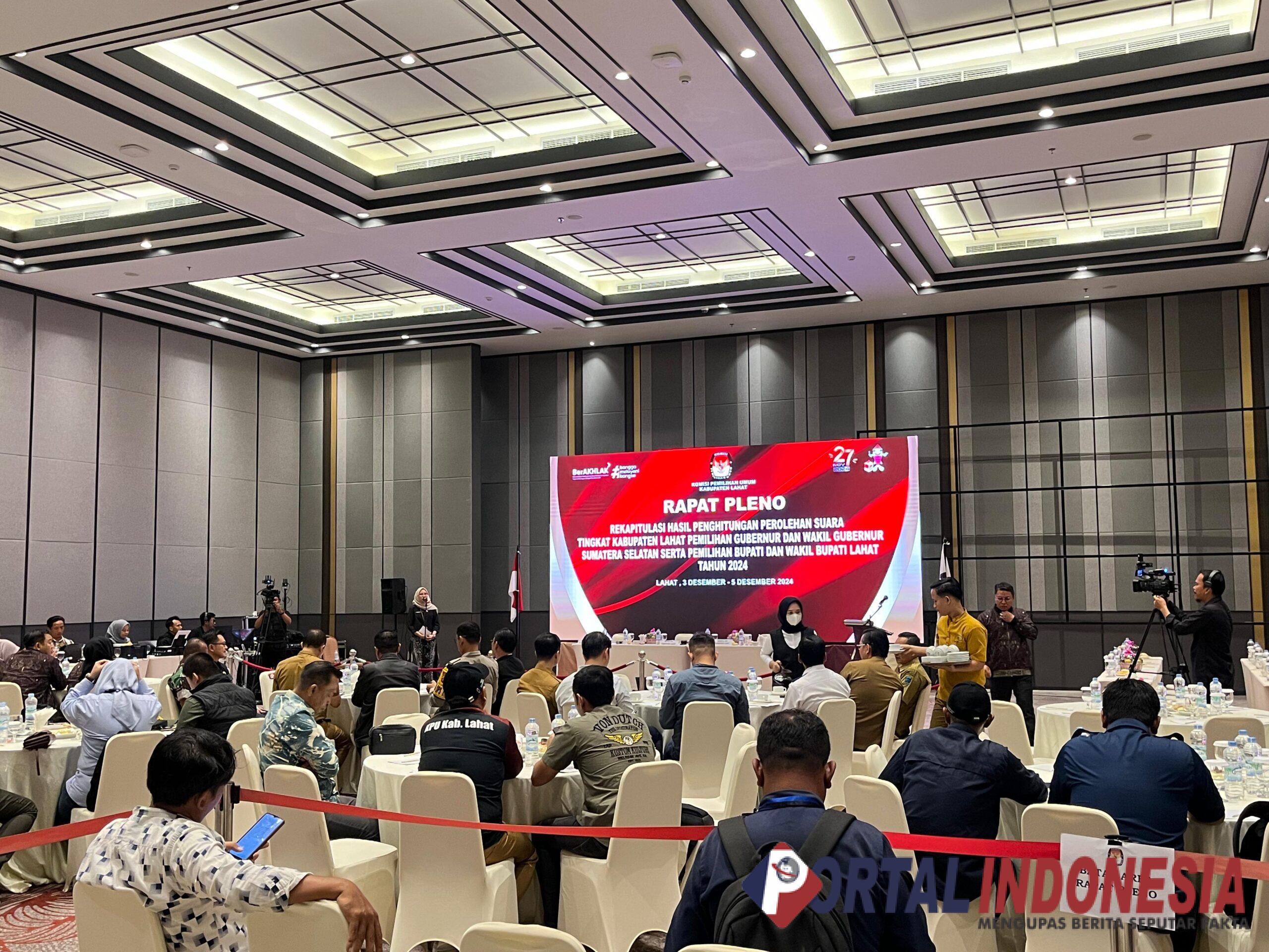 LAHAT – Rapat Pleno Rekapitulasi Hasil Penghitungan Suara Pemilihan Gubernur dan Wakil Gubernur Sumatera Selatan (PGWG) serta Bupati dan Wakil Bupati Lahat (PBWB) Tahun 2024 resmi digelar di Hotel Santika, Lahat, pada Selasa (03/12/2024).
